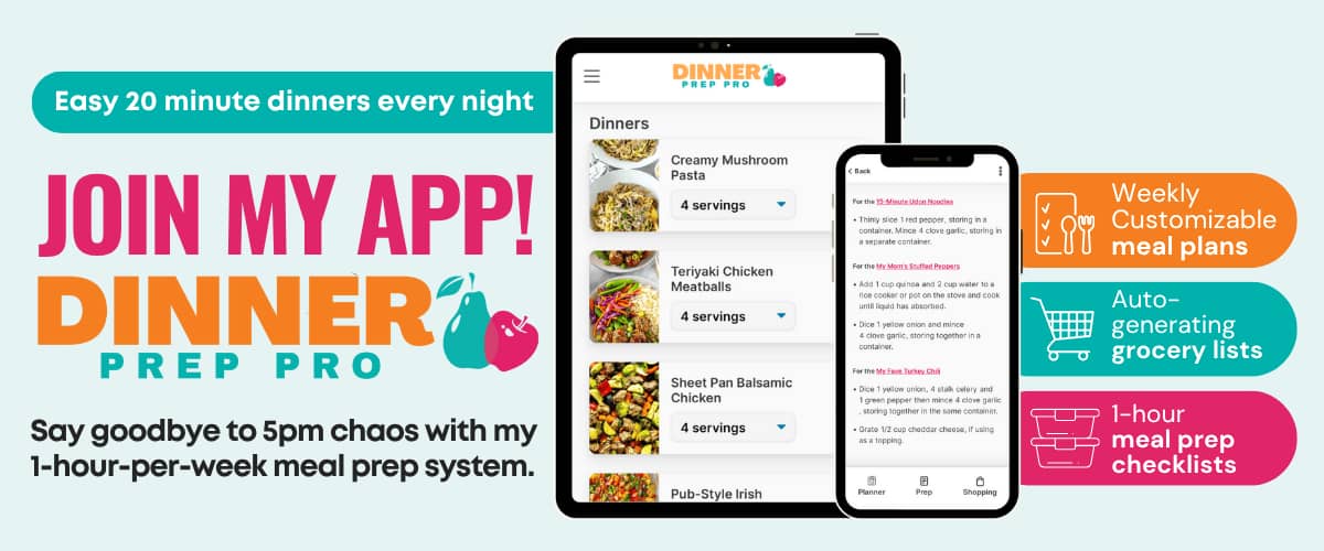 Join 30,000+ readers reducing burnout, saving money and freeing up time thanks to my 1 hour/week meal prep system.